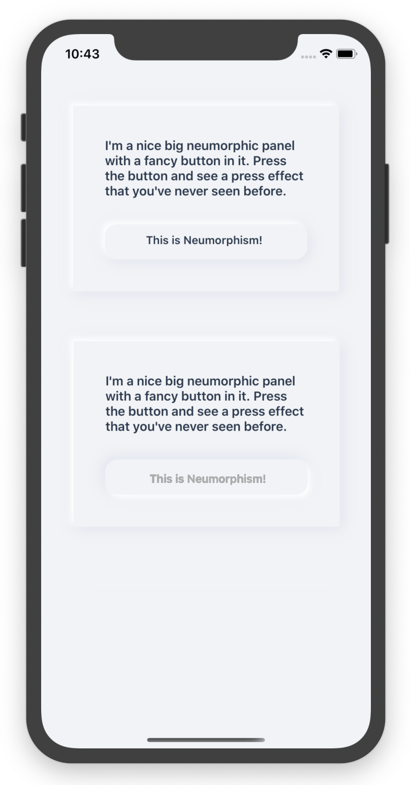 A neumorphism panel and button in our little Xamarin.iOS app.